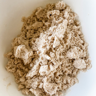 In the mean, make the streusel. Combine all the ingredients in a medium sized bowl and mix with your hands until everything is well mixed and you have a crumbly consistency.